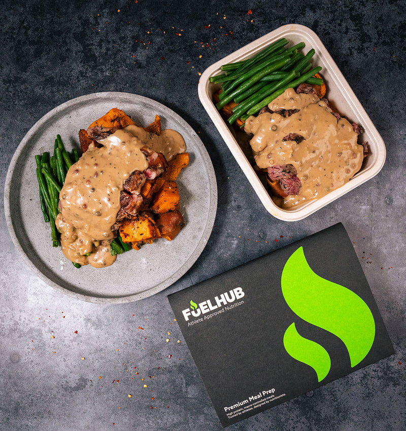 Sweet Potato, Rump Steak, Green Beans, Coconut Milk, Peppercorns, Corn Flour, Worcestershire Sauce (Fish, Soya), Tamari (Soya), Gluten-Free Beef Bouillon, Olive Oil, Chilli Flakes, Sea Salt, Black Pepper, Garlic, Dried Mixed Herbs, Onion Powder, Garlic Powder