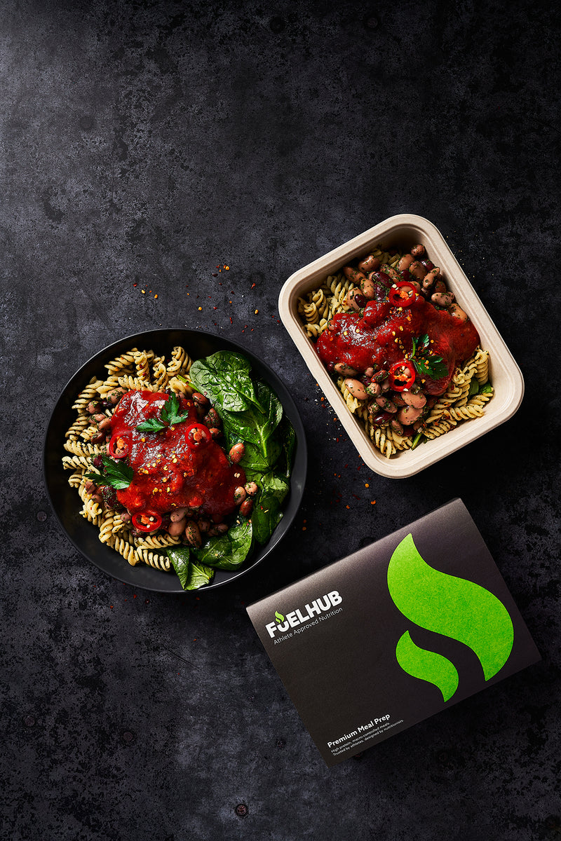 5-bean mix in a spicy tomato sauce, served with Pasta & Spinach