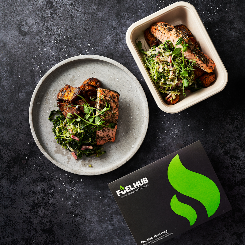 Sweet Potato, Salmon (Fish), Cabbage, Bacon Lardons, Olive Oil, Sea Salt, Black Pepper, Onion Powder, Garlic, Dried Mixed Herbs, White Wine Vinegar, Wholegrain Mustard, Honey, Garlic Purée, Lemon Juice, Rosemary, Dried Thyme