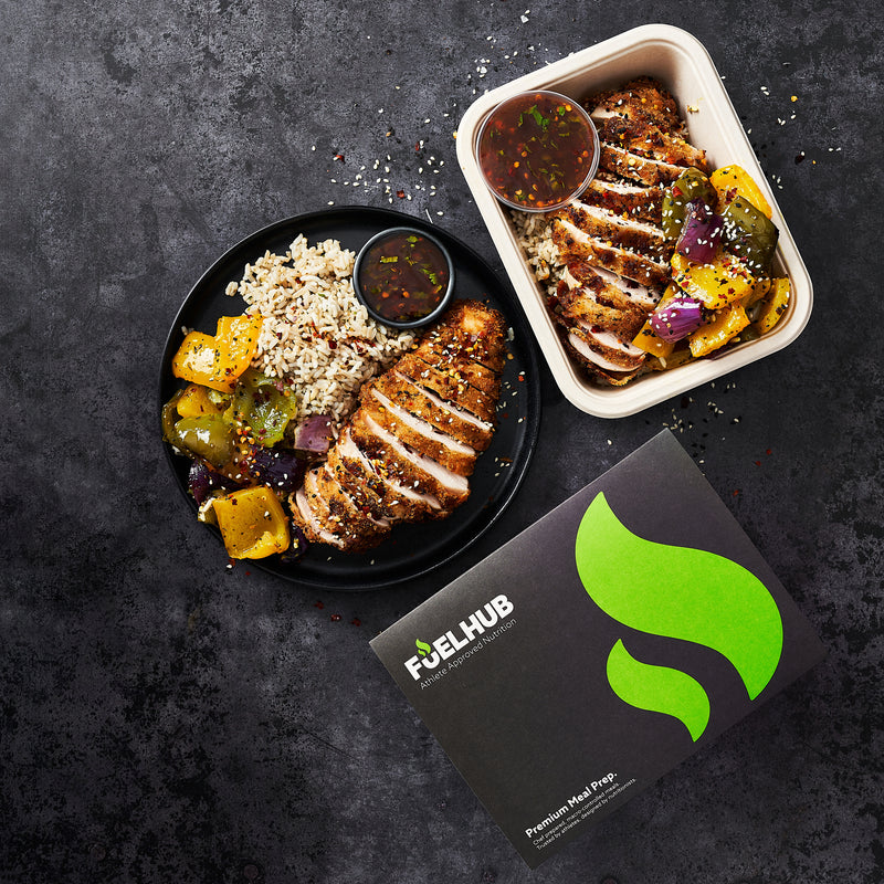 Chicken Breast, Wholegrain Rice, Mixed Bell Peppers, Onion, Water, Sweet Chilli Sauce, Panko Breadcrumbs (Wheat), Olive Oil, Flour (Wheat), Eggs, Tamari (Soya), Red Wine Vinegar (Sulphites), Onion Powder, Dried Mixed Herbs, Sea Salt, Black Pepper, Chinese 5 Spice, Garlic, Chilli Flakes, Red Chilli Peppers, Spring Onions, Ginger